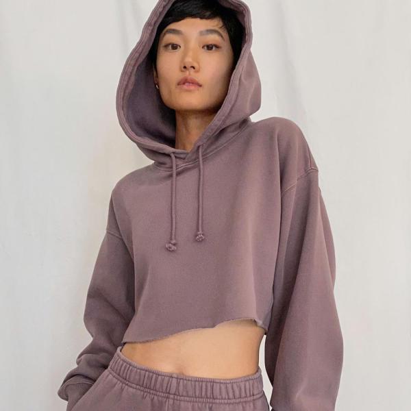 Plain Cropped Hooded Sweatshirts French Terry Women Jumper Sweater Images |